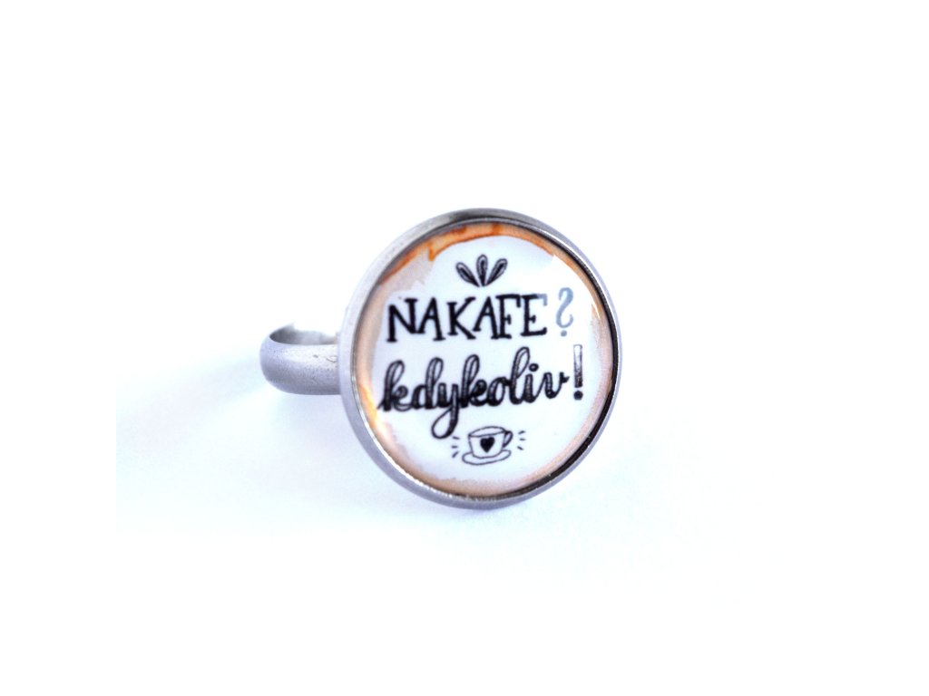 Prstýnek s nápisem Na kafe? Kdykoliv!