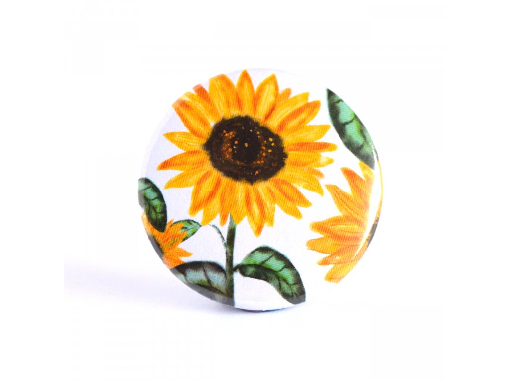 Visací náušnice na uzavíratelné zapínání s motivem slunečnic. Motiv je chráněn průsvitnou a vysoce lesklou epoxy vrstvou